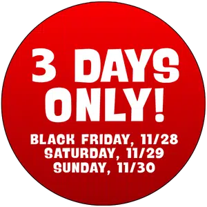 Black Friday, 11/28, Saturday 11/29, and Sunday 11/30